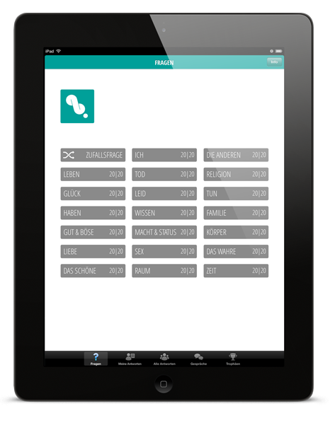 Unterbrechen Sie den Alltag für ein paar Minuten, um über die wesentlichen Fragen des Lebens nachzudenken. Erkennen Sie sich selbst und begreifen Sie die Welt ein wenig besser. Überall und jederzeit. Alleine für sich oder im Austausch mit anderen.