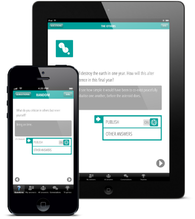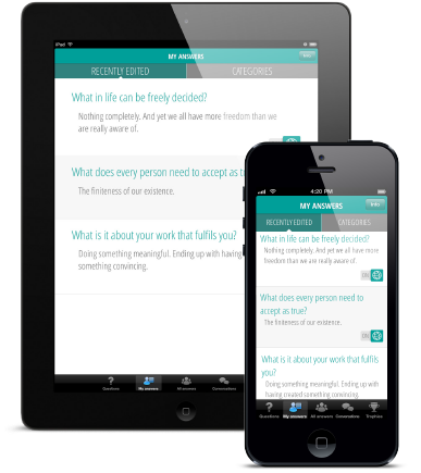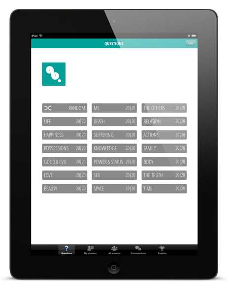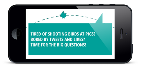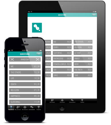 Interrupt daily life for a few minutes to think about the key questions in life. Find yourself and understand the world a little better. Everywhere, at any time. Alone or interacting with others.